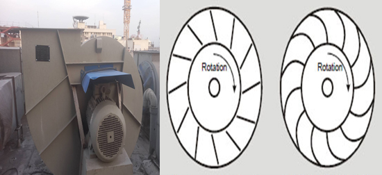 فن های سانتریفیوژ بکوارد دارای تیغه های خمیده به عقب هستند. این فن ها برای سیستم های تهویه موضعی بکار برده میشوند. فن های بکوارد برای کنترل گاز و بخار و میست بسیار کاربردی بوده و در این نوع سیستم ها موفق بوده اند.